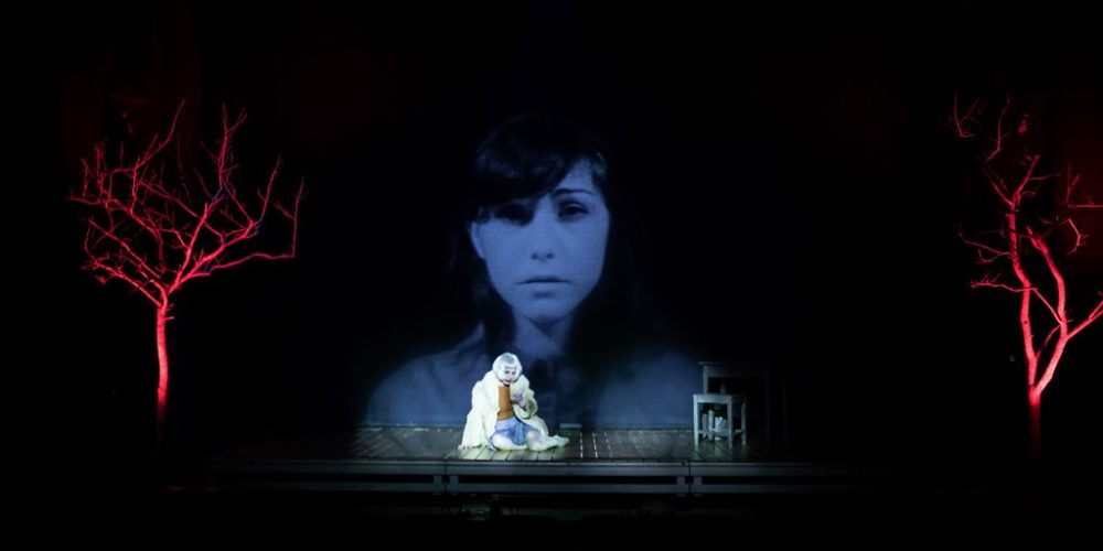 Ko se denimo na Zarino odrsko prisotnost projicira vlogo Ingel v spominu Aliide ali ko se iz spomina v sedanjost prikrade Martin ter še posebej v monologih Aliide, kjer se (tako v dramski predlogi dve, v uprizoritvi pa ena sama oseba) soočata obraza Aliide iz obeh obdobij. Ta dinamičnost je še posebej dobrodošla, saj uprizoritveni prostor ostaja večinoma nespremenjen (scenograf Teemu Nurmelin). Leseni pod, ki se dviga v steno in zarisuje obris Aliidine hiše, drevesi na vsaki strani, ki markirata dvorišče in premične stene, ki označujejo vrata, ko je to potrebno ter delujejo kot projekcijska platna za povečave obrazov protagonistk. Podobno konstantna je tudi pravljično-melanholična glasbena podoba Ville Hyvönen, ki gradi predvsem na podeželsko srhljivi atmosferi.