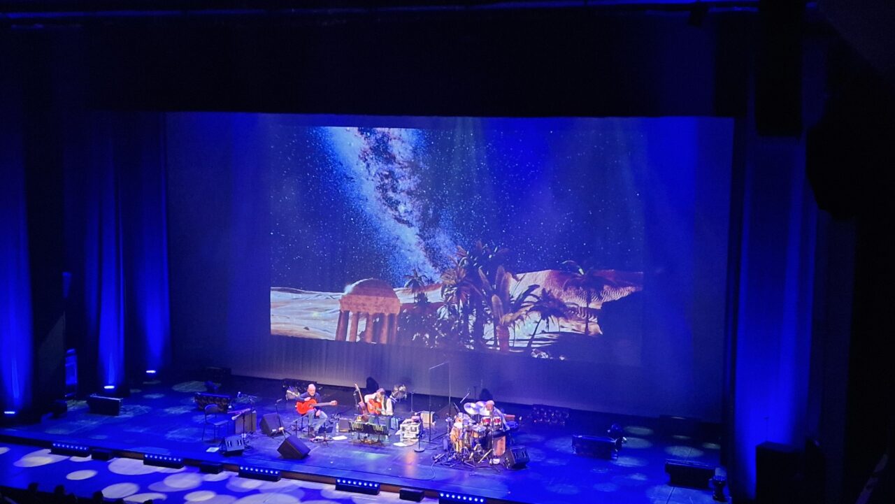 Ne vem, kdo si je zamislil, da se bodo na gromozanskem platnu za triom vrteli nesmiselni in amaterski video posnetki. Benetke so bile sicer kvalitetno predstavljene. Ogledali smo si tudi balone nad Kapadokijo. Pa Alovo hčer in nekaj baletnih korakov. Precej nenavaden je bil kolaž sebkov (selfijev), na katerih se Al objema z drugimi slavnimi glasbeniki, a k tej temi se še vrnem. Nesmiseln pa leti na množico različno svetlih rumenih točk, ki so migotale v odsotnosti drugega materiala, na dolgočasne posnetke morja in nerazumljivo kroženje okoli porušenega paviljona, obdanega s palmami sredi puščave, ki je spremljalo argentinsko milongo. Ker se tria in njihovih prstov izpod stropa dvorane ne vidi dobro, smo se včasih zataknili v video posnetke in kar malo pozabili na glasbeno podlago, kar je pravzaprav ironično, saj nisem bil edini, ki se mu je zdelo ozvočenje preglasno (zelo kmalu sem si v ušesa namestil posebne dušilne čepke, ki jih sicer uporabljajo glasbeniki na vajah). Vse skupaj me je spomnilo na pradavne črno-bele filmske projekcije, ki jih je v živo spremljal pianist. Glede na velikost dvorane, bi na platno lahko neposredno prenašali dogajanje na odru, kar je že dolgo standard pri dogodkih na večjih prizoriščih.