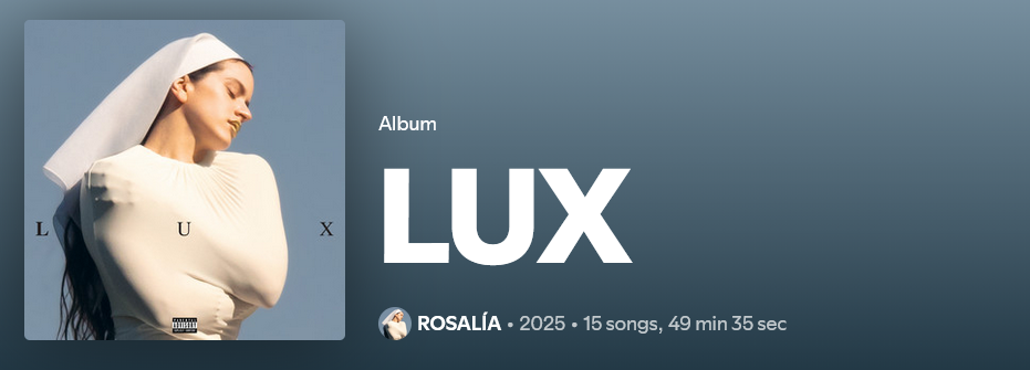Lux je četrti studijski album španske pevke Rosalíe, ki je nastal v sodelovanju z Londonskim simfoničnim orkestrom pod vodstvom islandskega dirigenta Daníela Bjarnasona, Rosalía pa je delovala tudi kot izvršna producentka. Album vključuje številne gostujoče ustvarjalce, med njimi Björk, portugalsko fado pevko Carminho, Estrello Morente, Sílvio Pérez Cruz, mehiški trio Yahritza y su Esencia ter Yvess Tumor.