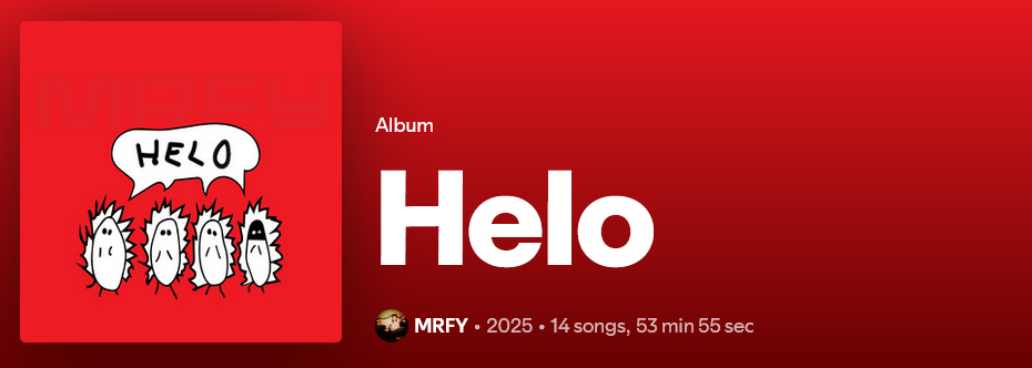 Žanrsko MRFY še vedno zelo radi skačejo naokrog, so pa v primerjavi z albumom Use pesmi na Helo, žanrskim izletom navkljub, del enotnejše zvočne slike, kar je ponavadi cilj albumske produkcije, četudi odvzame nekaj malega dinamike. Helo vsebuje 14 skladb in je časovno občutno daljši od predhodnika, kar se nekoliko pozna v sredini albuma. Ironično nostalgična »Fat kid«, z vedno dobrodošlo Masayah podkrepljena »Stupid«, MRFYjevski hardcore-lite »Future Idols«, anime balada »Venera«, tehnažasta »Human« in ostale so namreč dobre pesmi, ki bi lahko izšle tudi kot singli, vse skupaj pa so malo prevelik zalogaj. Kljub temu razumem, zakaj so izvajalci pristali na tako gostoto, kajti tudi sam bi na njihovem mestu težko izločil katerokoli izmed skladb.