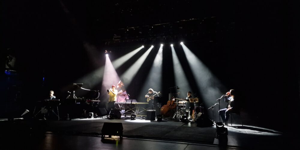 Konstelacije so se začele v popolni temi, ki so jo počasi trgali posamezni reflektorji. Luč je odprla posamezne instrumente, podprla ples in ujela pripovedni lok večera, ki je vrhunec doživel v bravurah nenapovedanega gosta, fenomenalnega Jureta Pukla, ki je tik pred svojim nastopom iz dvorane stekel v zaodrje in nekaj hipov za tem že izlival dušo v svoj sopranski saksofon. Zvok je bil ves čas odličen, nianse različnih inštrumentov in Urškinega taconea[6] dobro uravnovešene. Glasbeniki pred dokončnim odhodom z odra niso zaplesali v ritmu bulerije, namesto tega je Raynald navdušeno publiko prepričal v a cappella izvedbo skladbe »Septiembre« in tako simbolično prilepil zadnji košček v ljubljanski kolaž, sestavljen iz pisane palete žanrov, stilov, zvokov, ritmov …