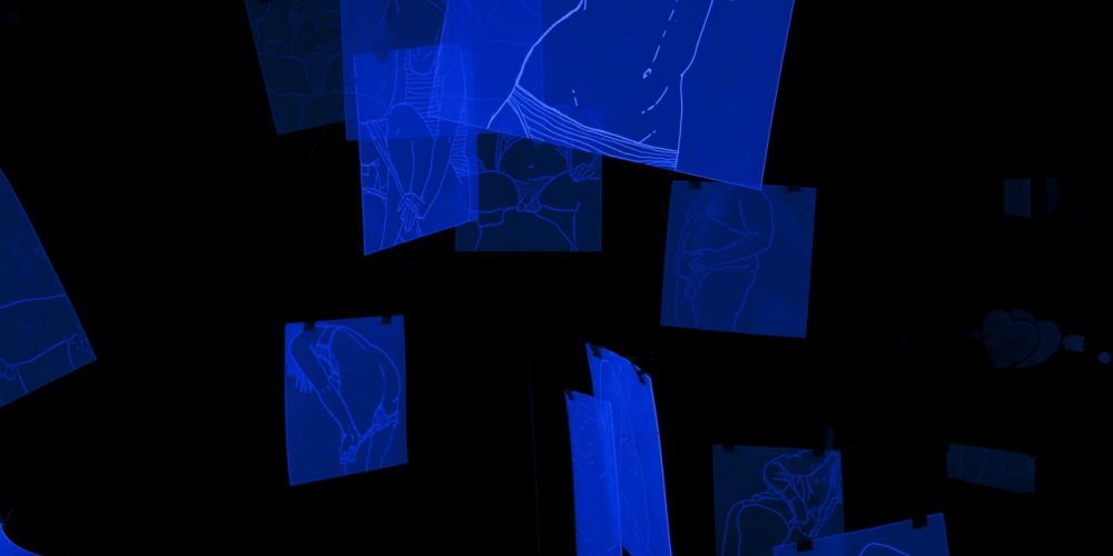 Druga soba nam predstavi najbolj »klasičen del« razstave, kjer se v bivši »peep show« kabini nahajajo risbe pod UV svetlobo. Opazujemo jih lahko le preko kukala, ki ustvarja podobno razmerje med gledalcem ter umetniškim delom kot Duchampovo delo Étant donnés. Ta del razstave nas, bolj kot k umetnici, približa k neznancem na drugi strani njenih pogovorov. Motiv voajerstva se ozira na nepotešeno željo akterjev na drugi strani portala Omegle in za trenutek lahko izkusimo njihovo poželjivost.