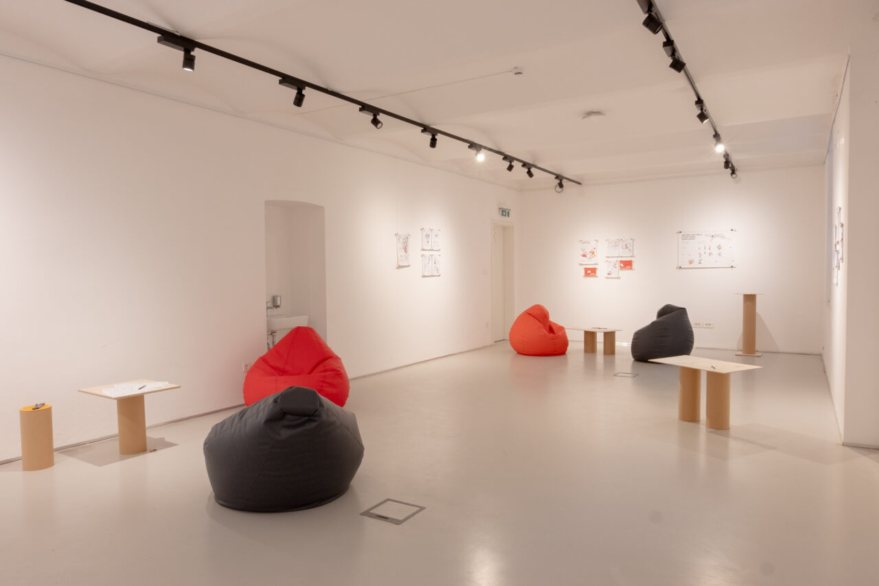 Obiskovalca, vajena tovrstnega jezika, sva na besedilo gledala nekoliko drugače. Žargon se nama ni zdel nujno problematičen, saj je pri kompleksnejših temah pogosto edini način, da ostanemo natančni in ne zapademo v poenostavljanje. A to ne pomeni, da tak jezik brez zadržkov sodi v razstavni pamflet, ki je za marsikoga prvi stik z deli. Čeprav splošna publika ne obstaja kot enotna skupina, temveč kot preplet raznolikih obiskovalk_cev, z različnimi ozadji, interesi in pričakovanji, je prav ta raznolikost razlog, zakaj je dostopna, orientacijska točka komunikacije ključna.